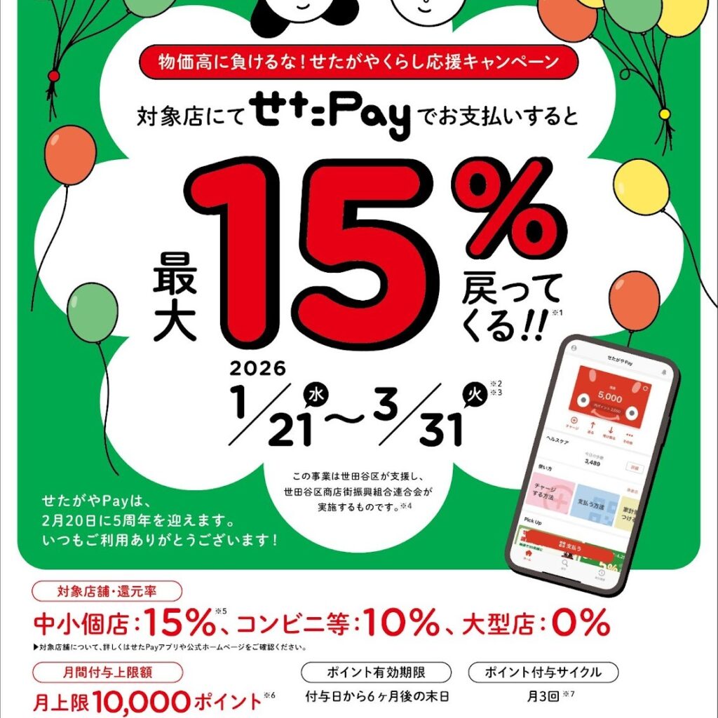 【緊急予告!キャンペーンのお知らせ】1月21日(水)から最大15%還元「物価高に負けるな!せたがやくらし応援キャンペーン」を実施します!