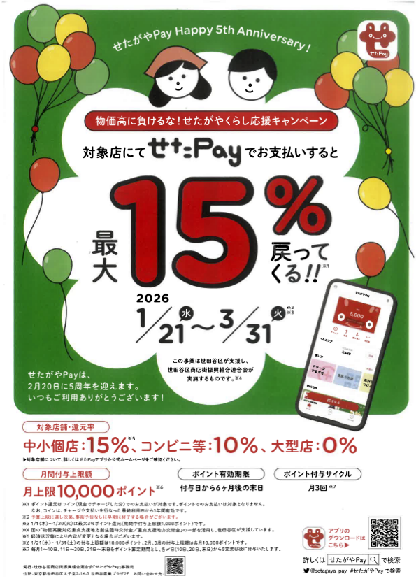 【緊急予告!キャンペーンのお知らせ】1月21日(水)から最大15%還元「物価高に負けるな!せたがやくらし応援キャンペーン」を実施します!